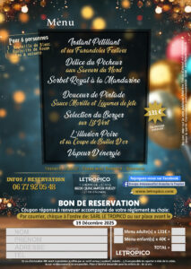🌟 REPAS ( Entrée – Sorbet – Plat – Salade / Fromage – Dessert avec Coupe de Bulles – Café)